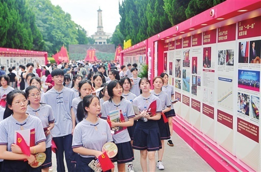 (为庆祝中国共产党成立100周年,我省开展了形式多样的活动。图为6月16日,市民在湖南烈士公园观看“恰是百年风华——庆祝中国共产党成立100周年主题展”。湖南日报全媒体首席记者 郭立亮 摄)