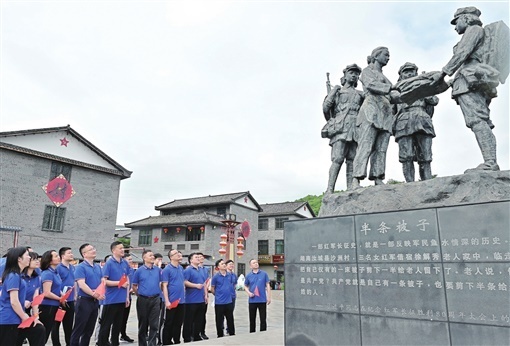 (今年以来,我省高标准高质量开展党史学习教育。图为5月25日,洞口县组织党员来到汝城县文明瑶族乡沙洲瑶族村,开展“传承半条被子精神 坚定初心使命”主题党日活动。滕治中 摄)