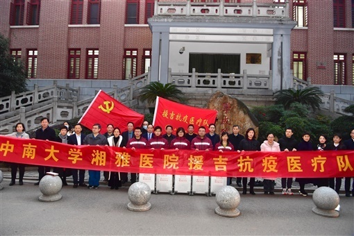 (1月26日傍晚,中南大学湘雅医院援吉抗疫医疗队队员出发前合影。湖南日报全媒体首席记者 郭立亮 摄)