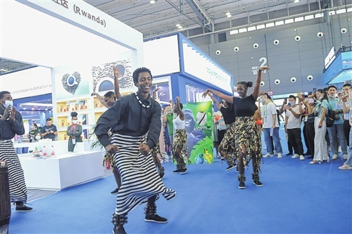 (9月28日,长沙国际会展中心,观众在卢旺达展区观看舞蹈表演。 当天,第二届中国-非洲经贸博览会主展馆向公众免费开放。湖南日报全媒体记者童迪 摄)