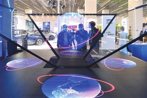 (10月18日,参观者在博览会的“一创科技”展区参观。当天,博鳌亚洲论坛全球经济发展与安全论坛博览会在长沙开幕。湖南日报全媒体记者辜鹏博 摄)