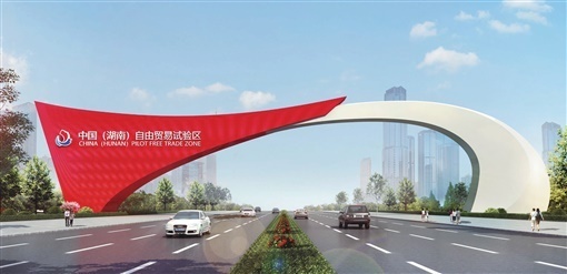 中国(湖南)自由贸易试验区标识建筑物。(效果图)