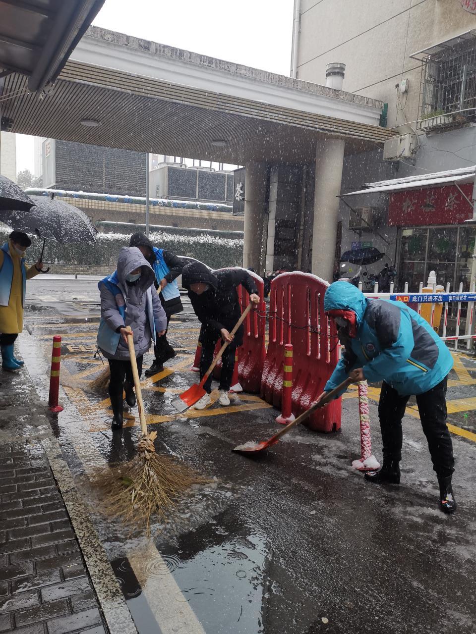泰山路街道泰园社区、嵩山路街道白鹤社区等多个街道社区里,志愿者们虽然头发、衣服、鞋袜都被刺骨的雪水侵湿,双手和脸被寒风吹得通红,但当他们看到冰雪覆盖的路面被打扫得干净整洁,想到下班的居民不再被积雪冰层滑倒而受伤,志愿者们又浑身充满了活力和能量。