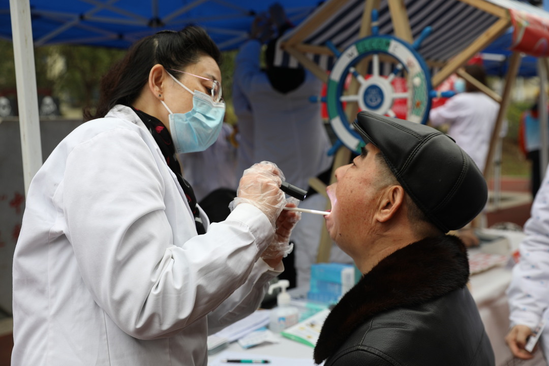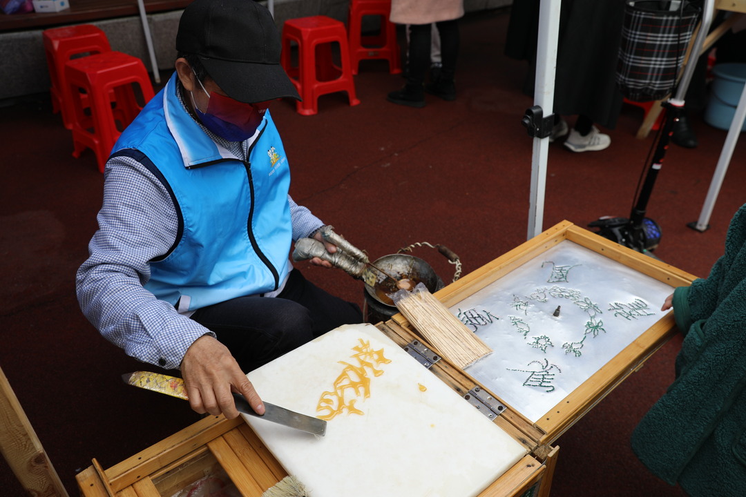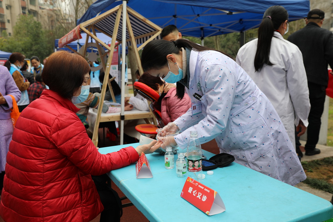 住在附近的居民陆续来到集市,来自街道社区卫生服务中心的家庭医生,为驻足的居民测量早餐饭后血糖、血压,中医医师的肩颈按摩台前排起长队;三门镇新鲜上市的蔬菜水果也有不少居民询价购买;孩子们挤在糖画摊位前,催着父母用"志愿服务积分"兑换生肖糖画;牙科、耳科义诊、理发义剪摊点前,医生志愿者在为居民进行健康咨询;法律咨询、政策咨询、磨刀……与生活息息相关的各类便民服务都在集市上,居民们交口称赞,直呼:"全民学雷锋,雷锋精神是‘流量担当’,这些活动便民,有意义。"