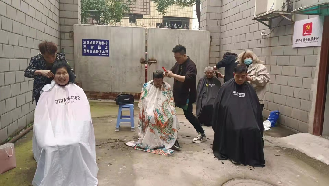 嵩山路街道康华小区里,来自创意思艺美发机构的志愿者还登门为行动不便的老人提供上门剪发、健康咨询、卫生清扫等志愿服务,为他们做了实事、解了难事;小区过道里,志愿商家免费提供的盆栽,受到居民"热抢"。