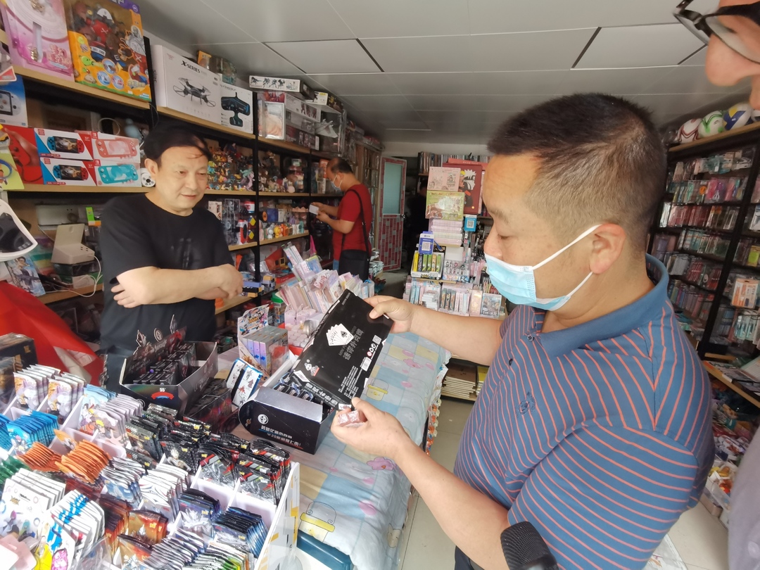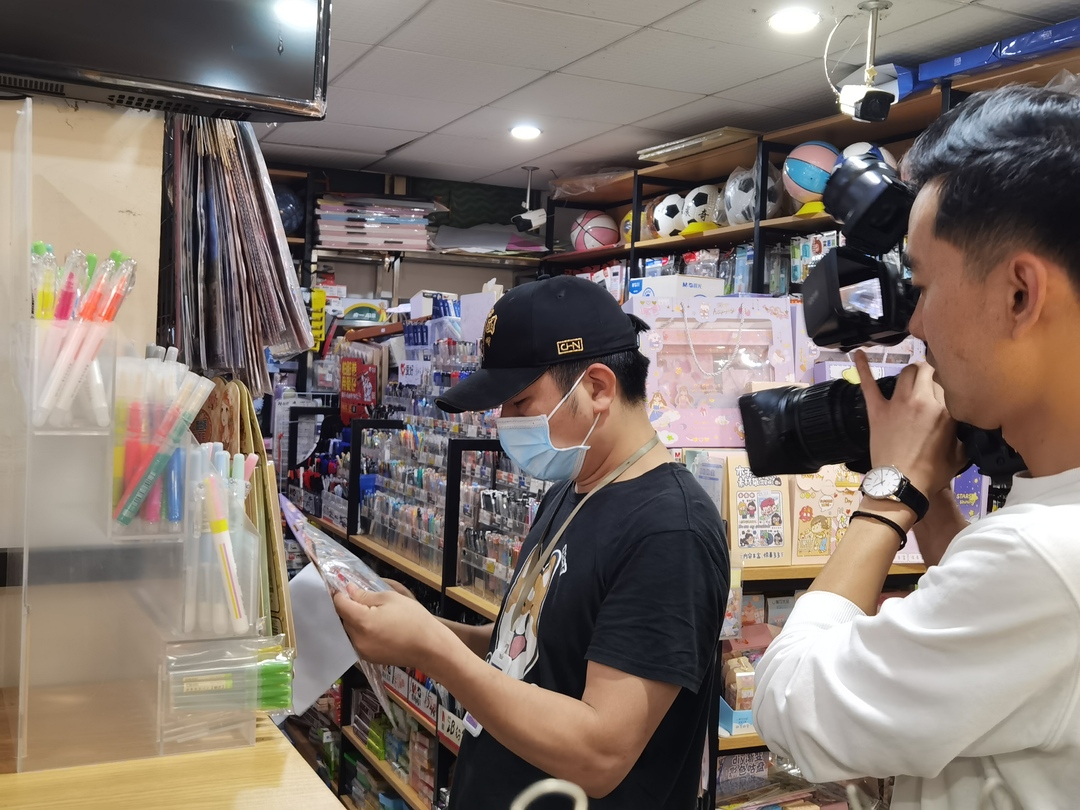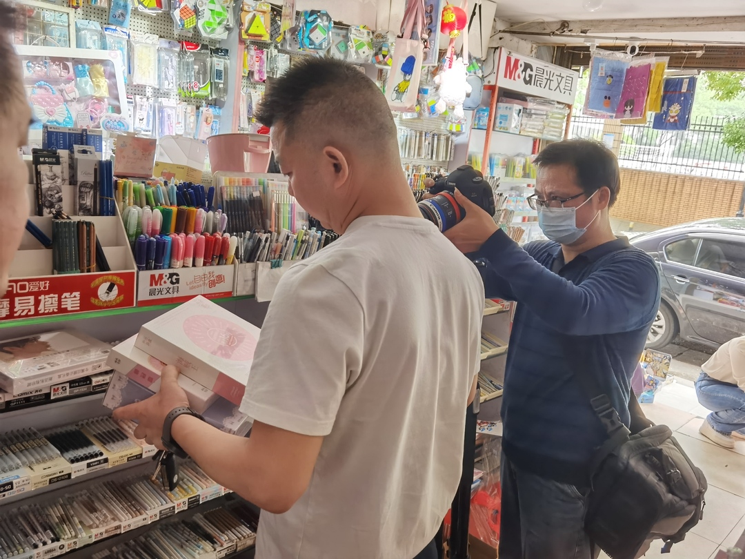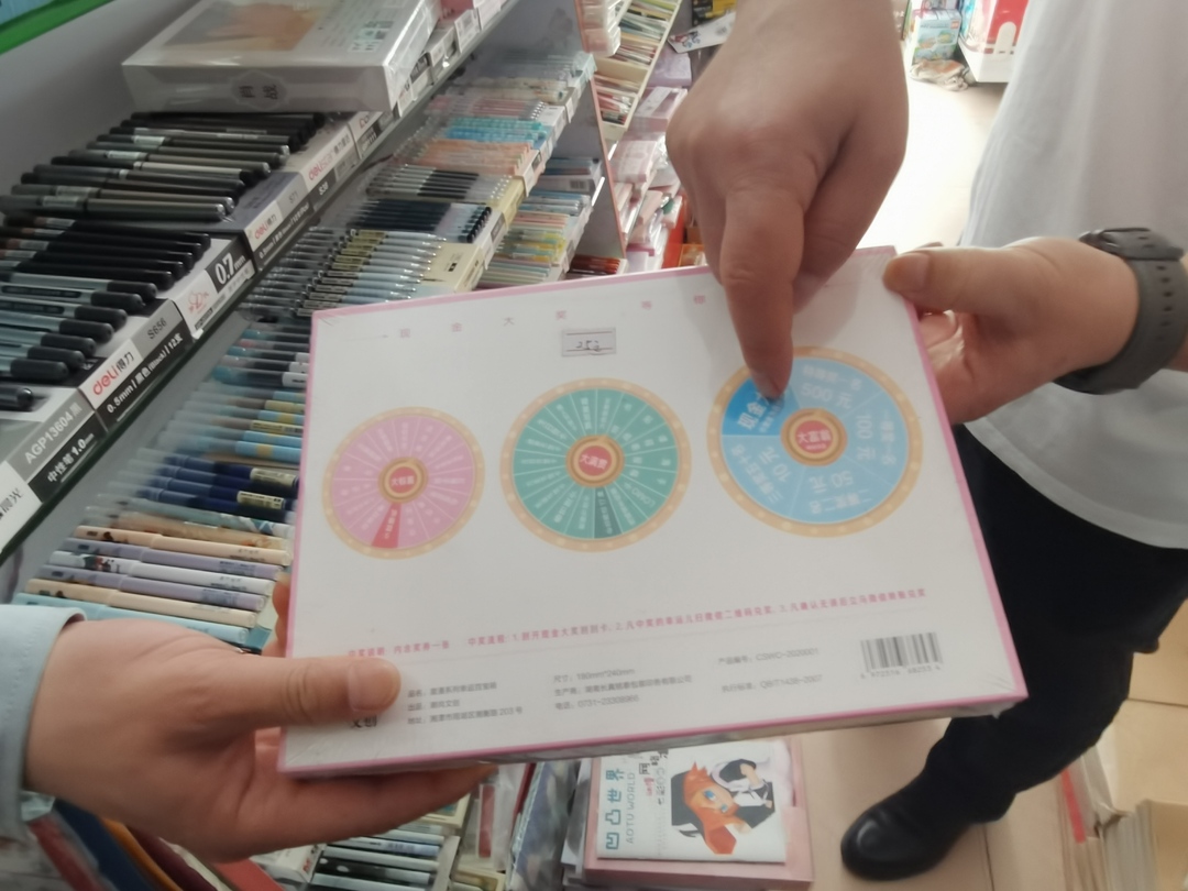 在白鹤小学校门斜对面的一家文具店,暗访督查组发现店内销售的部分明信片套装礼盒带有抽奖博彩性质。市场监管人员现场进行了取证,并要求店主提供购货清单、供货商相关信息等资料,接受进一步调查。