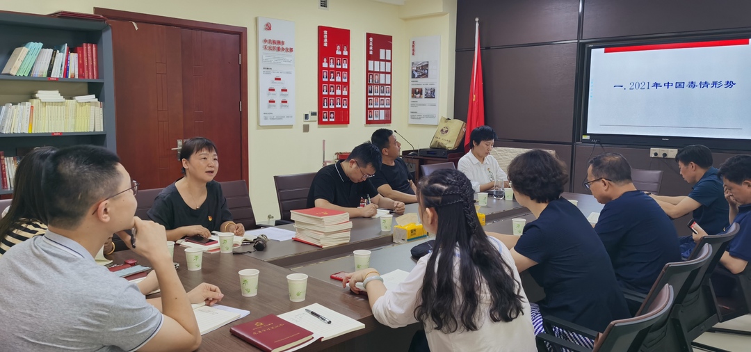 6月29日下午,中共株洲市天元区委办党支部组织支部党员上了一堂深刻、生动的“健康人生、绿色无毒”禁毒主题党课。支部副书记孙曙霞同志结合天元区6月26日第35个国际禁毒日系列活动开展情况,给全体党员上党课。党课传达了习近平总书记对禁毒工作的重要指示精神,分析了2021年中国毒情形势,讲解了新型毒品种类、来源以及防范与整治措施,还结合身边典型鲜活案例,进一步强化了当前禁毒工作的重要意义。课上,很多党员同志主动分享了学习心得,感慨良多,受益匪浅,纷纷表态不仅自己坚决拒毒,还要对家人、朋友、身边的群众作好禁毒宣传。支部书记对全体党员提出了明确要求, 区委办党支部应是全区基层党组织党务工作的标高,应成为思政学习理论研究的标杆,应成为聚焦区委区政府重点工作重大决策抓落实的标兵,因此,作为党办党支部党员干部,一定要主动对标习近平总书记禁毒工作重要批示指示精神,做到人人有责,个个尽责,为和谐、平安、幸福天元建设,贡献每个人的智慧和力量,发挥每个人的作用。