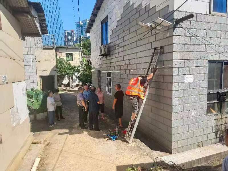 7月22日,在天元区市场监管局第3工作队的帮助下,大湖塘社区城中村的背街小巷,迎来了路灯。晚上,这些收集了一天太阳能的发电板,将持续输出电源,照亮居民回家路。