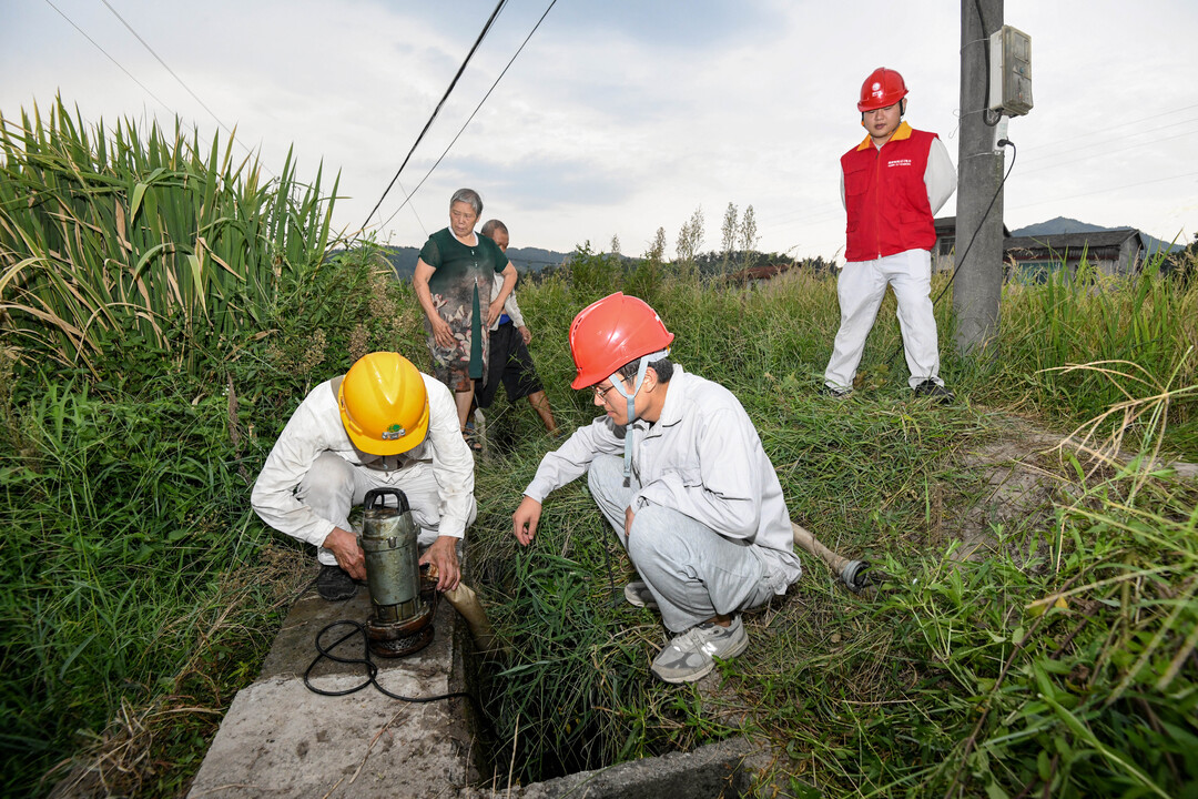 8月17日,国网新邵县供电公司组织共产党员服务队,在龙溪铺镇坳头村帮助村民安装灌溉设备,并全面排查供电线路、供水设备安全用电隐患。谢丽英摄