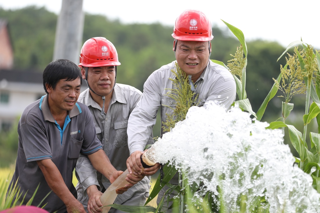 8月15日,娄底娄星支公司“电骏马”共产党员服务队走向田间地头,助力秋粮丰收。国网湖南电力供图