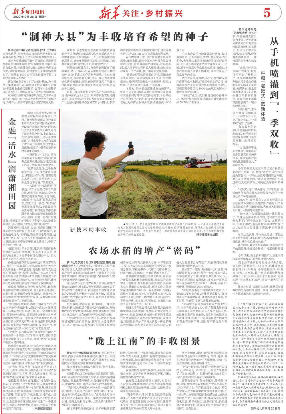 “生猪贷”只是建设银行湖南省分行助力产业振兴的一个缩影。2022年8月末,该行涉农贷款余额超过1511亿元,金融“活水”正源源不断注入田间阡陌。