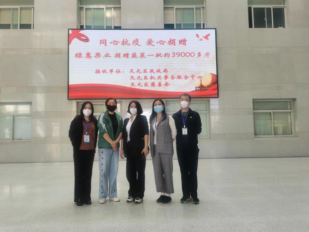 “居民们居家静默将近一周了,大部分防疫工作人员坚守在一线,几天都没回家了,看到他们非常辛苦,为感谢他们为抗疫工作的辛苦付出,我们公司想出一份力,拿出新鲜的蔬菜来支援天元区,让居民和奋战在一线的抗疫工作人员吃上新鲜蔬菜”,绿惠果业合伙人郭姐说道。