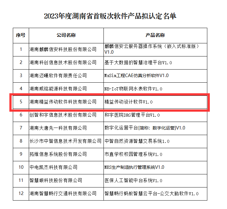 近日湖南省工信厅公布了“2023年度湖南省首版次软件产品拟认定名单”和“2023年湖南省制造业质量管理数字化系统解决方案入选名单”。其中株洲高新区天元工业软件园内企业湖南精益传动软件科技有限公司(以下简称“精益传动”)申报的“精益传动设计软件V1.0”和“基于智能寻优技术的新能源传动系统技术方案主动设计解决方案”分别上榜两类公示名单,也是此次全省唯一单独申报同时入选两类公示名单企业。
