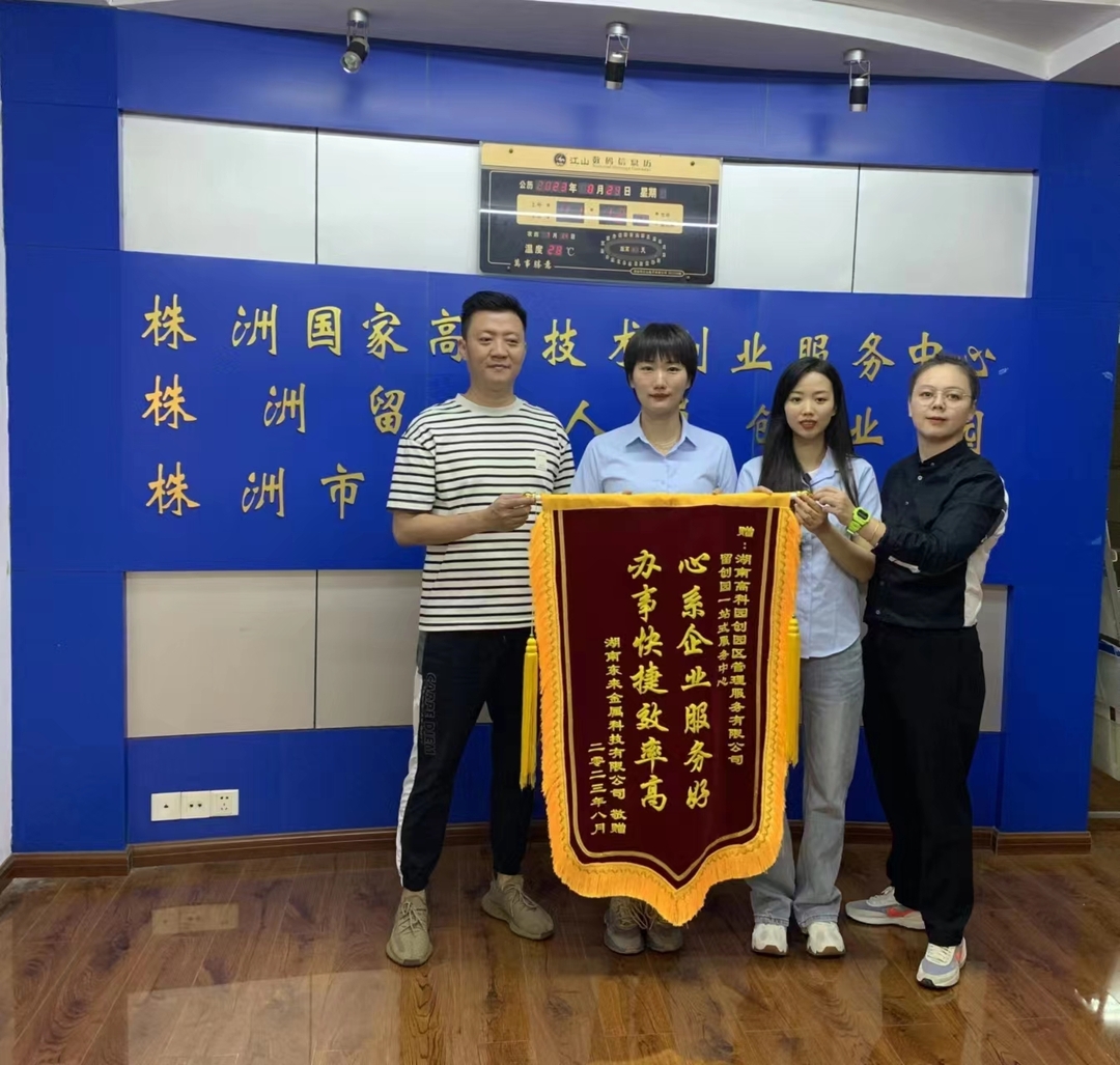 “心系企业服务好,办事快捷效率高。”近日,在株洲高新区企业服务局走访企业的过程中,留学生创业园片区的湖南某金属科技有限公司负责人,讲述起公司向对园区服务站送锦旗的故事,并对高新区企业服务工作啧啧称赞。