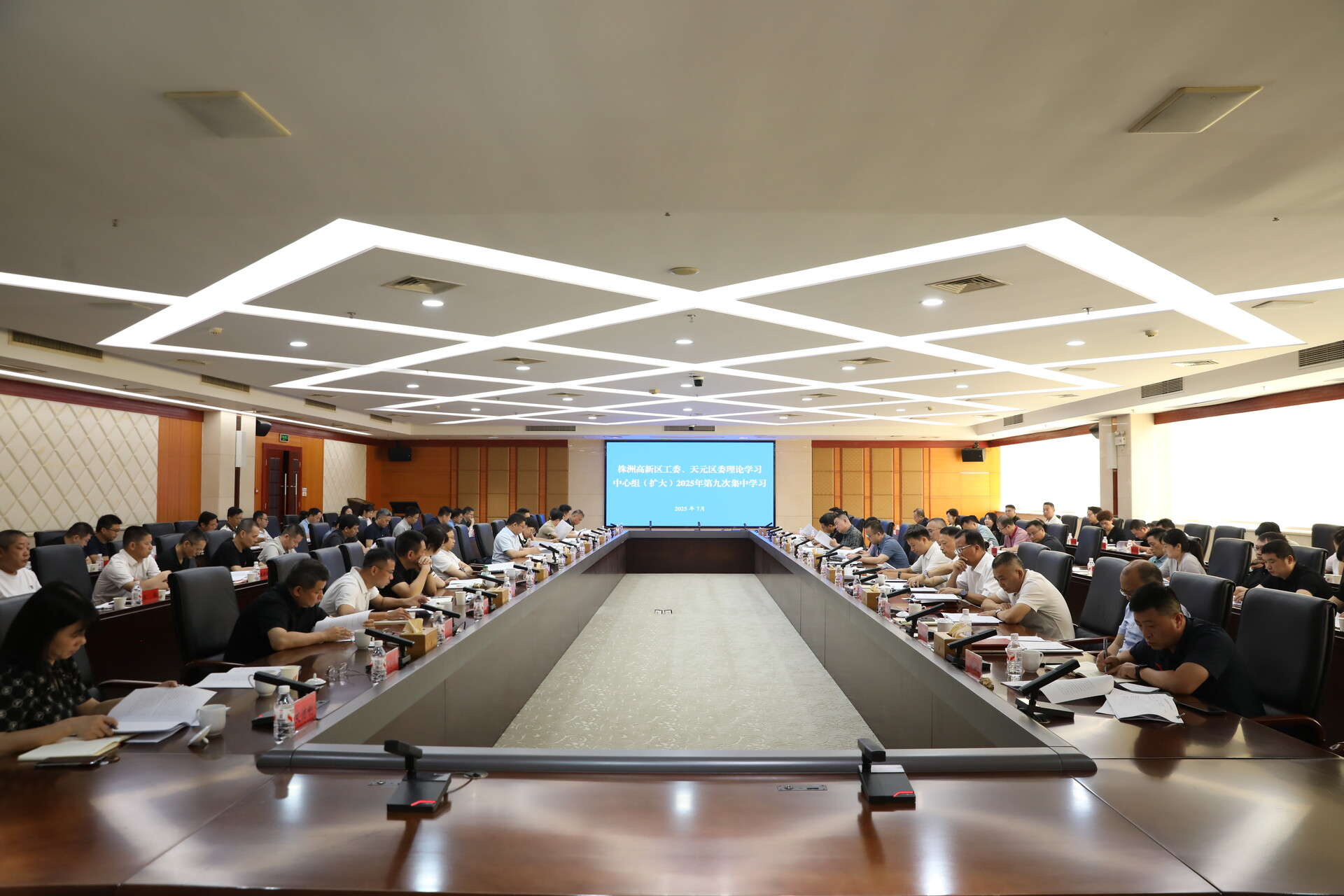 7月21日上午,株洲高新区工委、天元区委理论学习中心组(扩大)开展2025年第九次集中学习,深入学习贯彻习近平总书记关于加强党的作风建设、树立和践行正确政绩观、统计工作的重要论述精神,传达学习中央、省委有关会议文件精神,进一步推动学习教育走深走实,以优良作风保障高质量发展。受邬凌云书记委托,株洲高新区党工委副书记、管委会主任刘智勇主持会议并讲话,株洲高新区党工委委员、管委会副主任、天元区委副书记、区政府区长何柢出席。