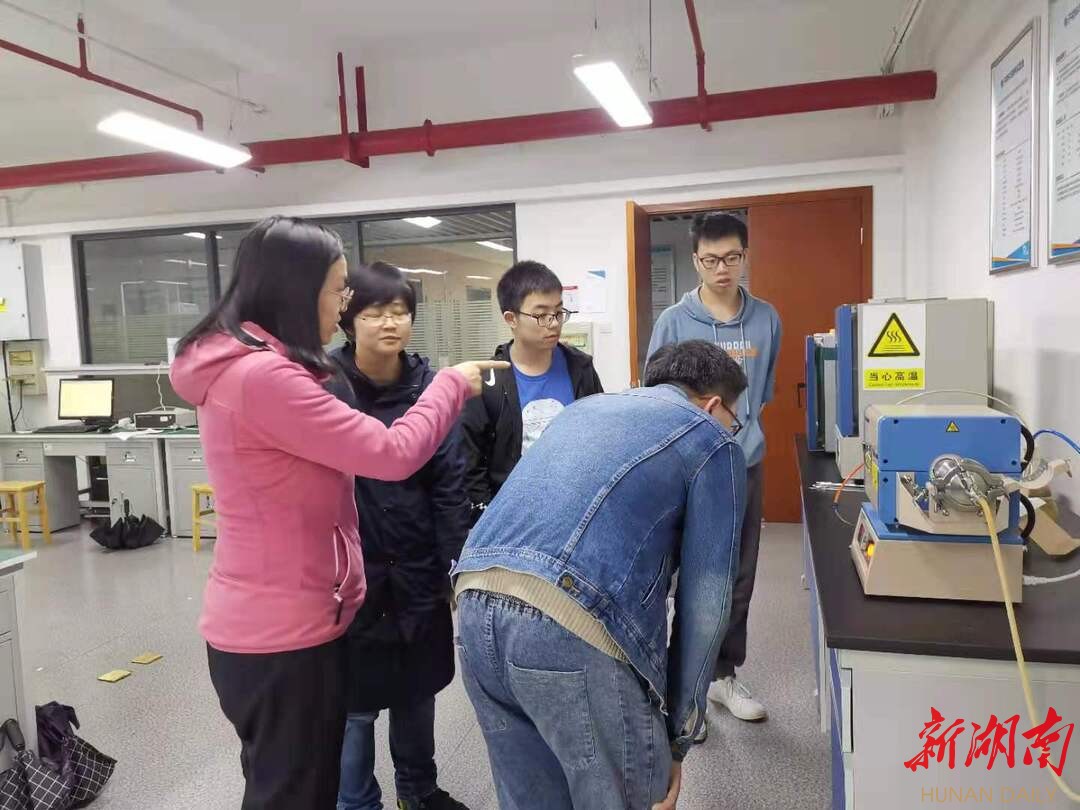 在中国动力谷自主创新园研发中心C栋三楼,北京交通大学和耶鲁大学共同培养的博士黄迪,正与电子材料与器件实验室同事领着几名湖南工业大学轨道交通学院的学生在做实验。黄迪的研究方向是光电材料与器件,2018年他经人推荐来到湖南工大任教,看中的就是株洲的新能源、轨道交通产业,以及动力谷对实验室的资金、场地支持。他们团队共有5位博士,研发可用于锂离子电池的负极材料,湖南立方新能源公司正准备与他们合作。