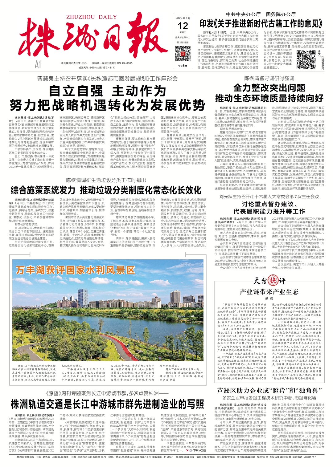 近日,万丰湖国家水利风景区授牌仪式在株洲市高科集团举行,这是我省唯一获评第十九批国家水利风景区的河湖。至此,我市已有包括攸县酒仙湖、湘江风光带在内的三个国家级水利风景区。