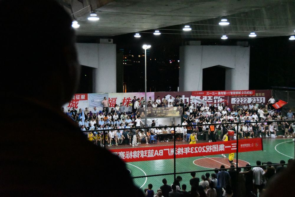 5月27日晚,市民在株洲市四桥篮球场观看球赛。新华社记者 刘芳洲 摄