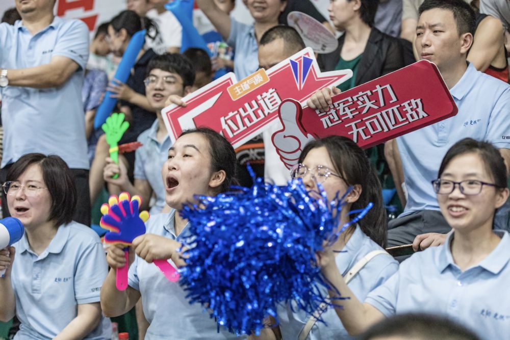 5月27日晚,亿都控股员工在场下为球员加油打气。