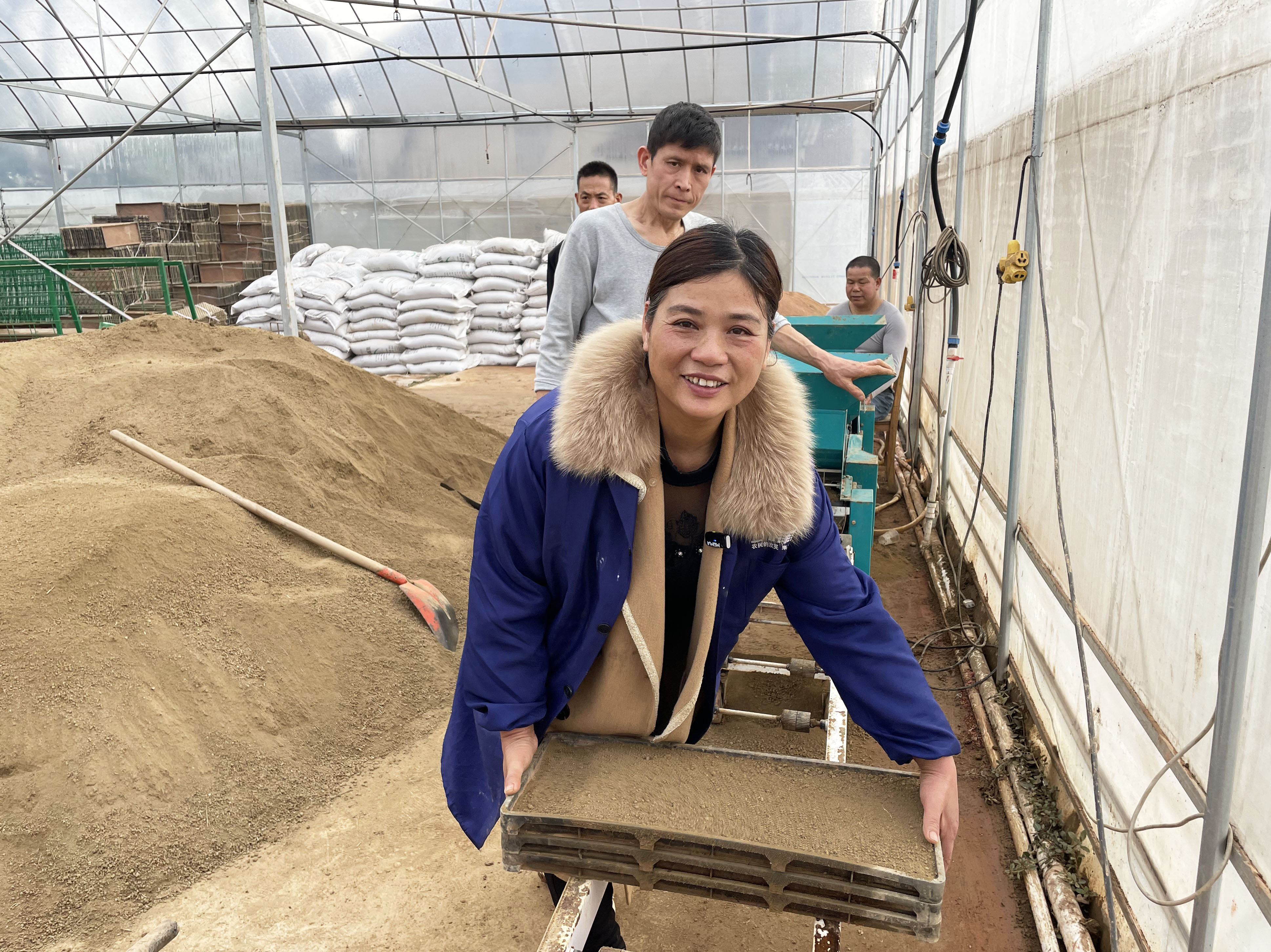 种粮大户、智能育秧大棚负责人吴爱珍介绍:“正常情况下,这个智能育秧流水线1小时可制作800个秧盘,一天运转8个小时的话,可以出6000多个秧盘,每亩按40至45个秧盘计算,可满足150亩水田用秧需要。既省时,又省心。”