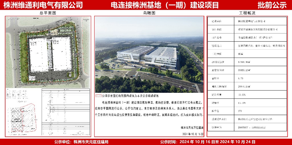 电连接株洲基地(一期)建设项目建设工程规划许可批前公示