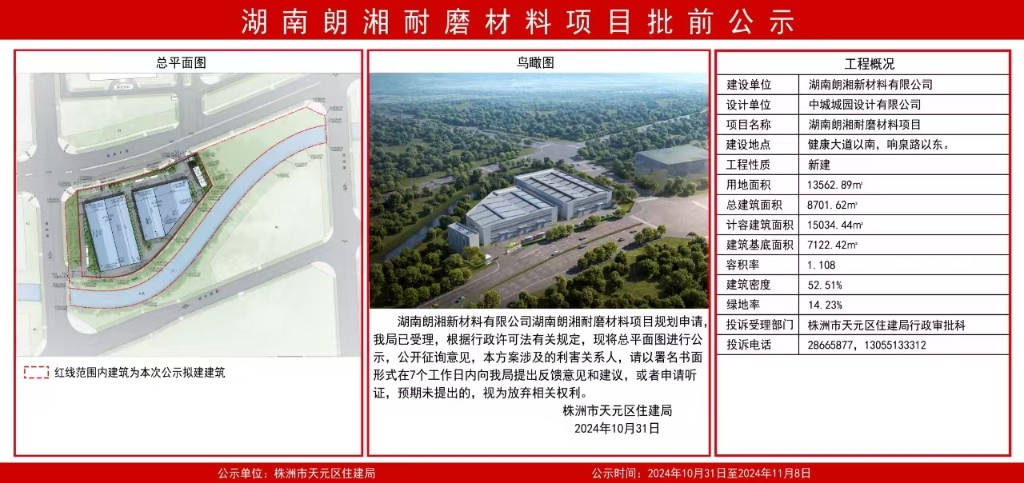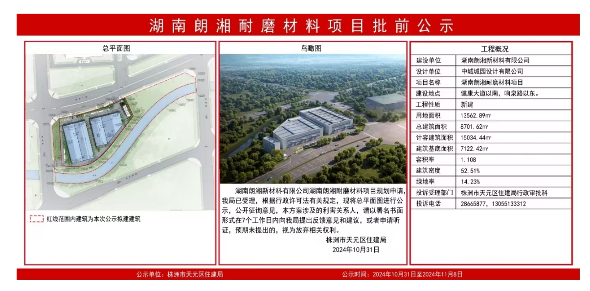 湖南朗湘耐磨材料项目建设工程规划许可批前公示