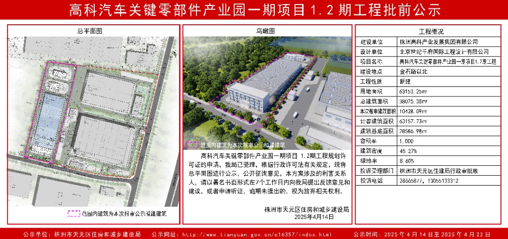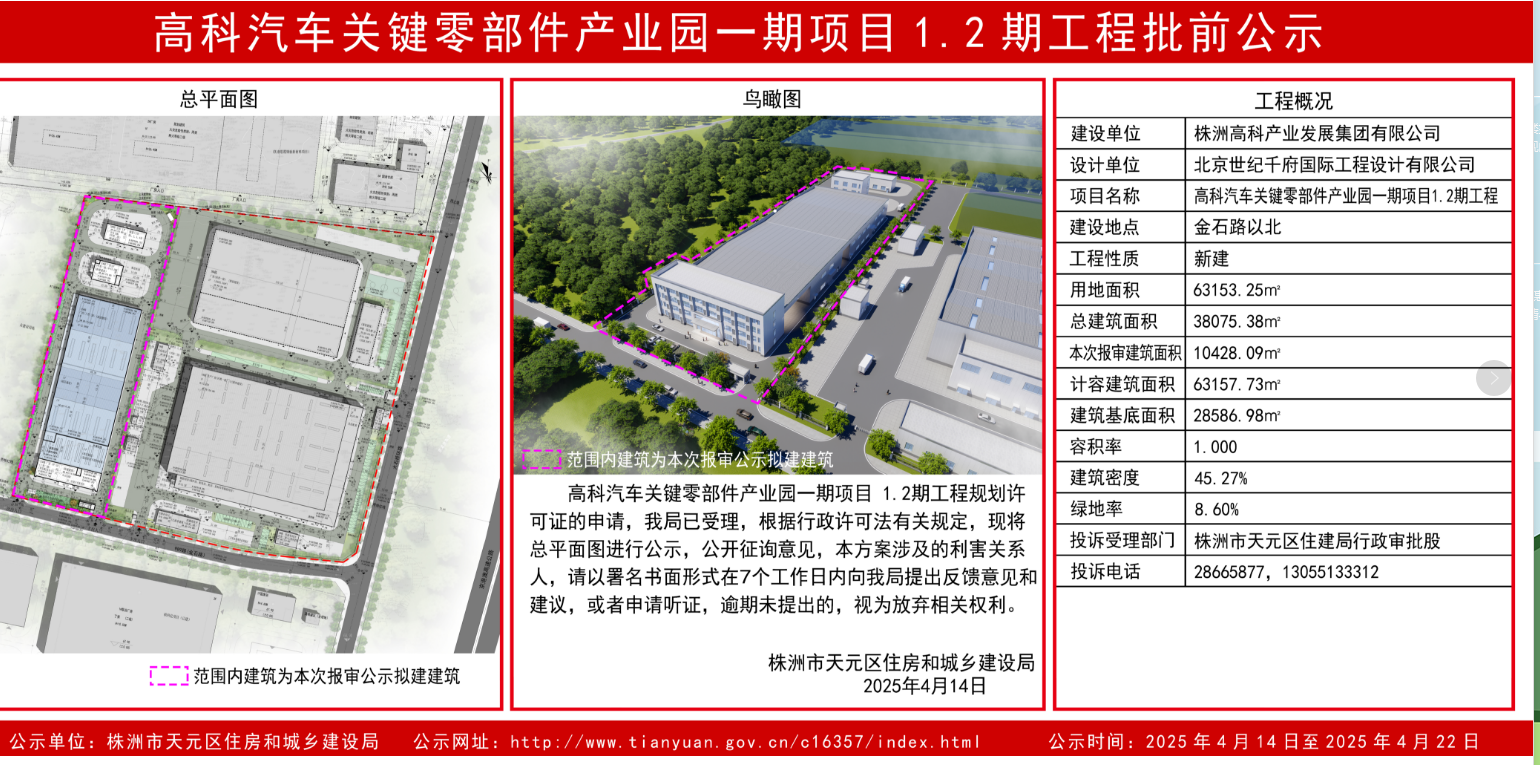 高科汽车关键零部件产业园一期项目1.2期工程批前公示