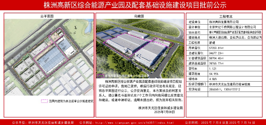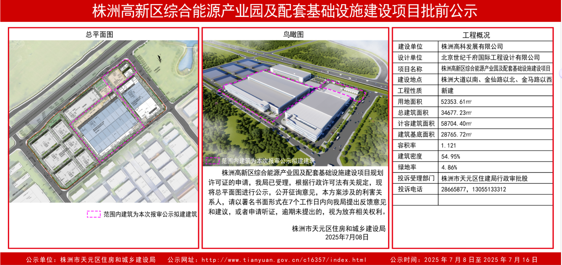 株洲高新区综合能源产业园及配套基础设施建设项目建设工程规划许可批前公示