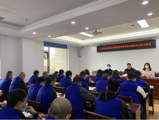为端正社区矫正对象认罪忏悔态度,提升遵纪守法意识,降低再犯罪风险率,2023年1月11日,天元区司法局集中组织29名社区矫正对象进行春节两会期间安全警示教育学习。