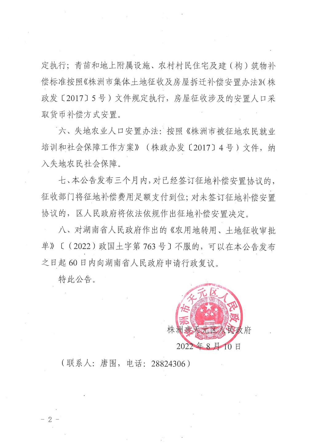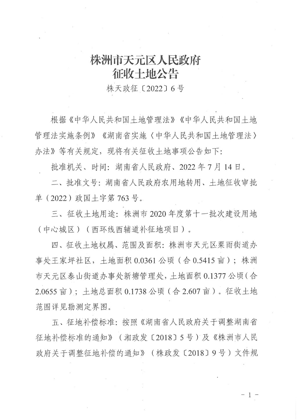 株洲市天元区人民政府征收土地公告(株天政征〔2022〕6号)