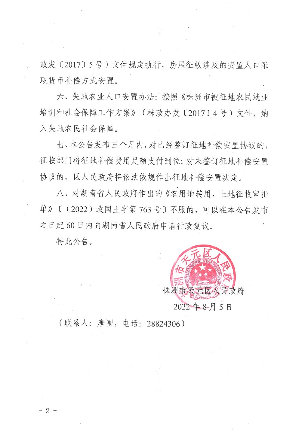 株洲市天元区人民政府征收土地公告(株天政征〔2022〕3号)