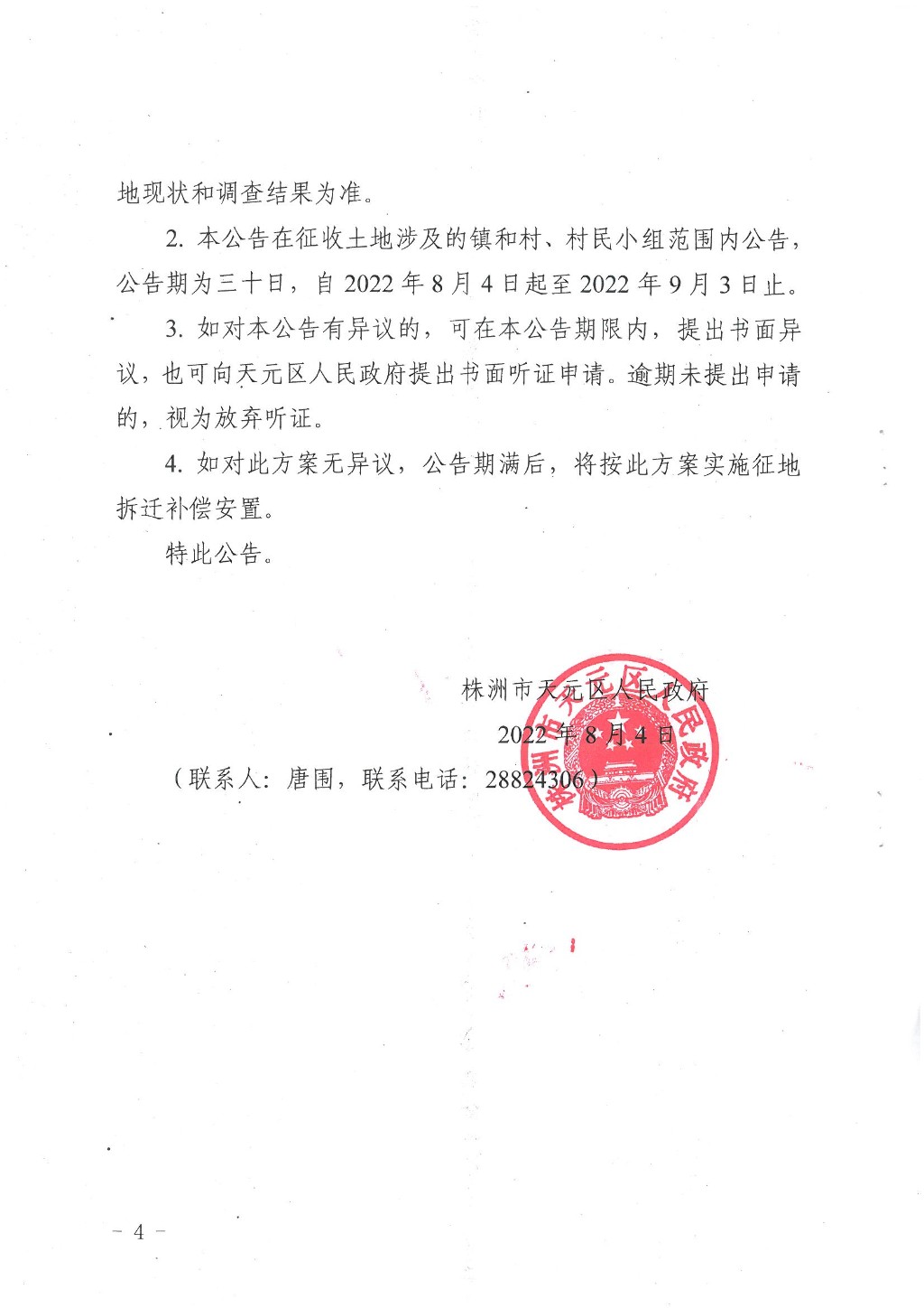 株洲市天元区人民政府征地补偿安置方案公告(株天政征安〔2022〕2号)