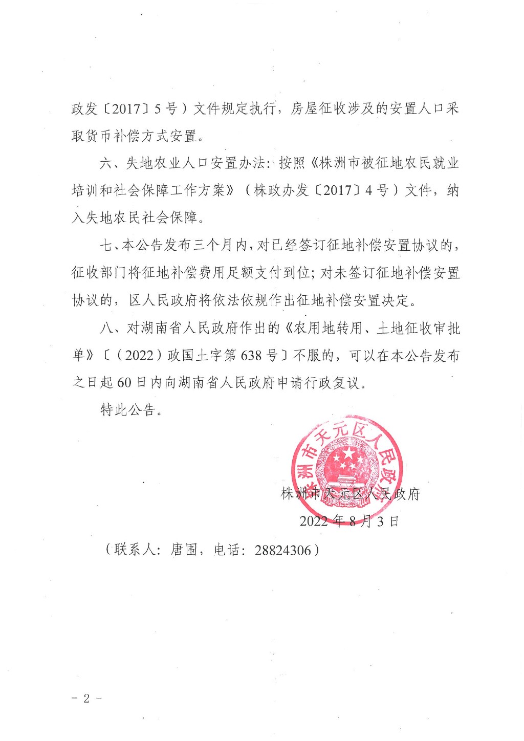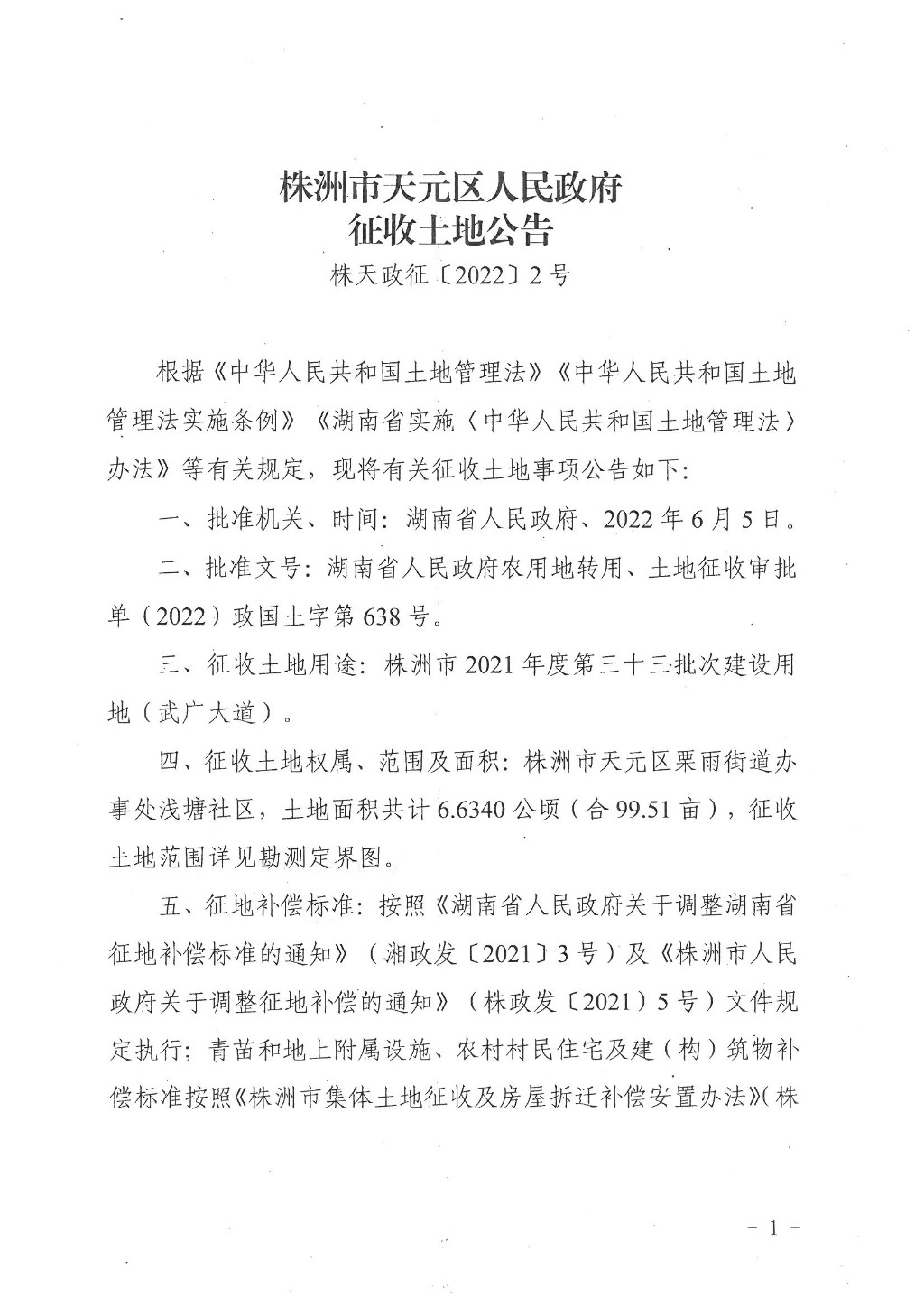 株洲市天元区人民政府征收土地公告(株天政征〔2022〕2号)