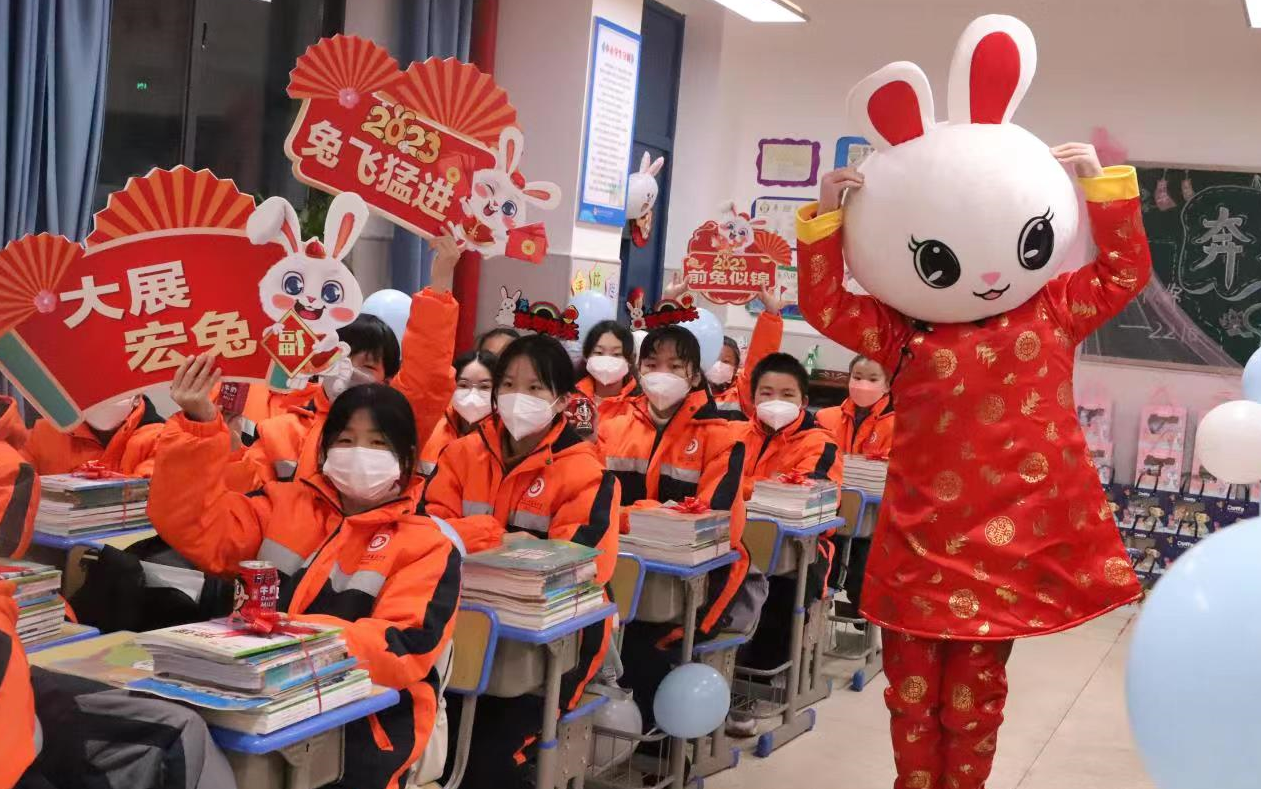 株洲市二中莲花中学校长和老师们为孩子们送上新学期的祝福;教室中,班主任带着精心准备的开学“小惊喜”待孩子们归来;久别重逢的好朋友喜悦地诉说寒假见闻。福兔呈新,愿前“兔”似锦!