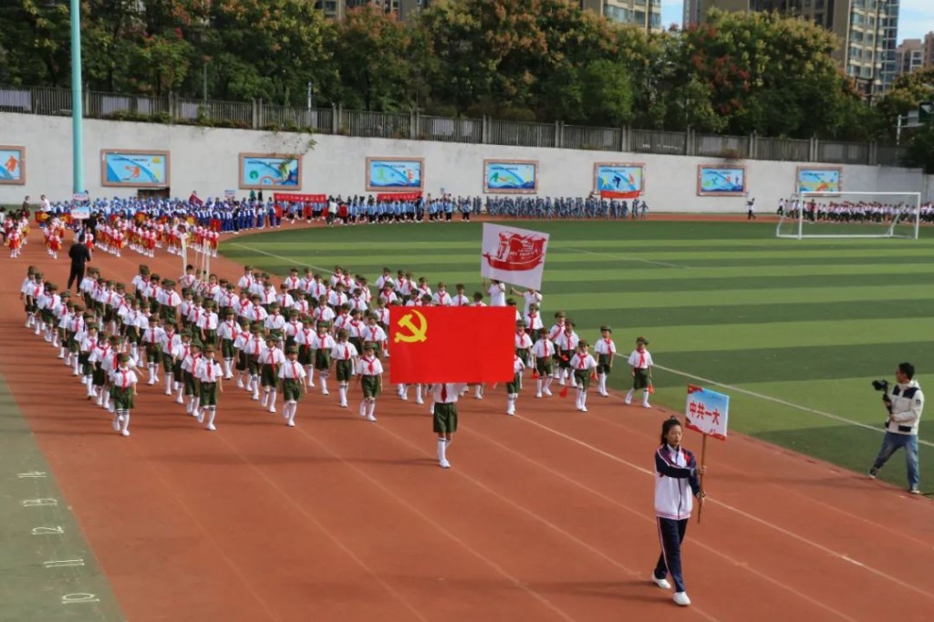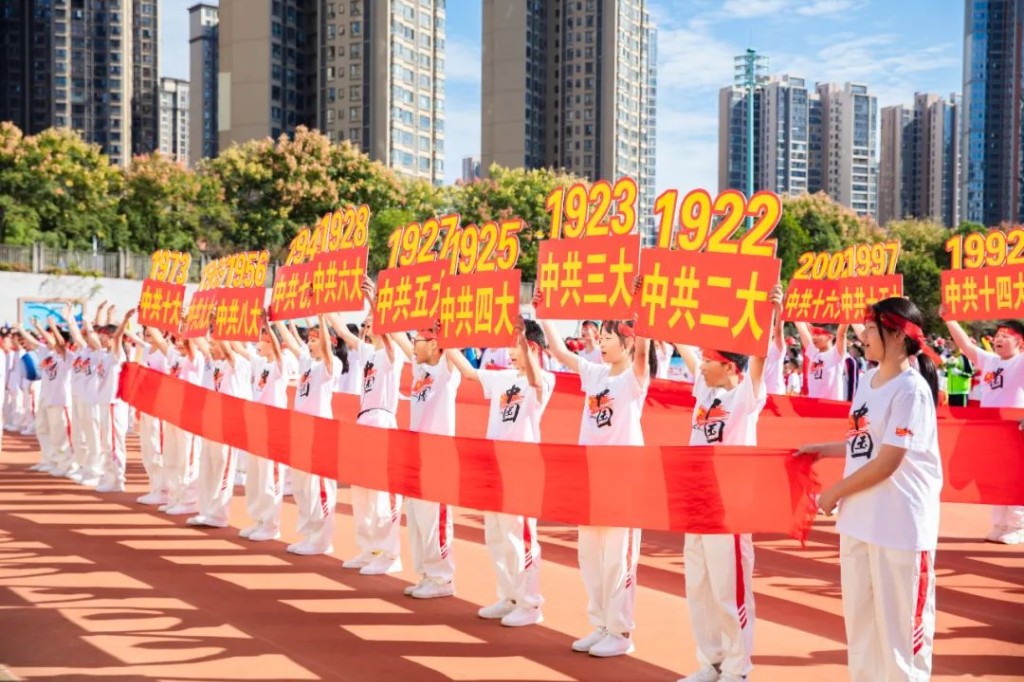 828分,由小学五年级和初中代表团体带来的汇演节目拉开了学校田径运动会开幕式的序幕,《鹤舞青春》《请党放心 强国有我》《崭新的华章》三大篇章精彩纷呈。