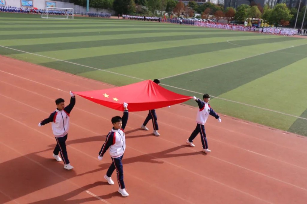 958分,天元区教育局党委书记、局长龙超俊用洪亮的声音宣布:株洲市天元区白鹤学校2022年秋季田径运动会开幕!顿时,全场沸腾起来,掌声、欢呼声经久不息。