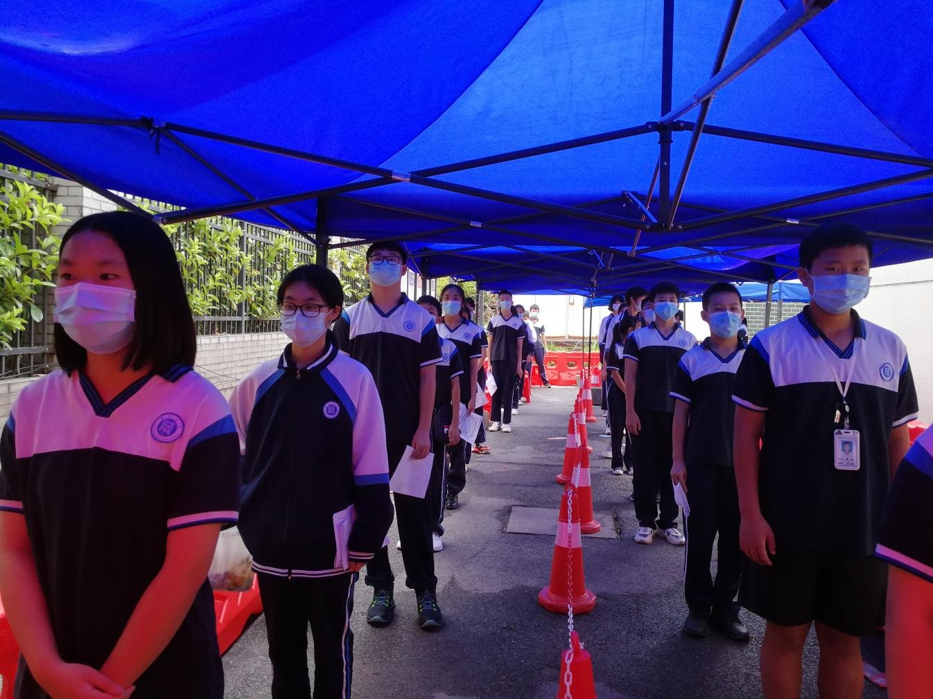 类似的细致工作,在接种点里处处可见。志愿者们在各接种点进行接待引导,对入校人员进行指引、验码和测温。在室外的排队进场处,接种点设置了隔离线,并安装了雨棚,供学生和家长遮阳、避雨。天元区疫苗接种工作能高效推进,正是得益于这些新区志愿者们,不畏酷暑、不计报酬,尽心尽力为人民服务。