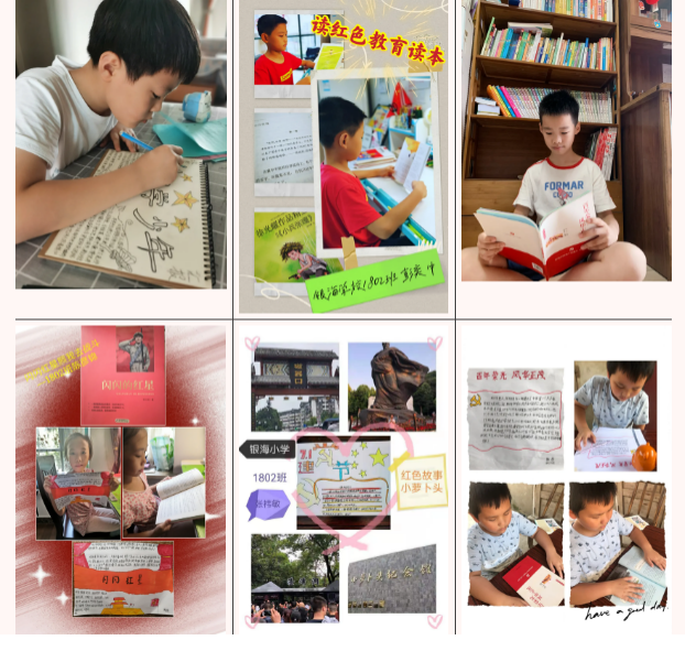 银海学校三年级全体学生在班级范围内掀起了一股“居家防疫,读一本红色书籍”的热潮。疫情虽然阻挡了我们去往大自然学习实践的脚步,却阻挡不了读书的热情。《党旗引领我成长》《红色少年的故事》《小英雄雨来》《难忘,1949》……一本本红色经典书籍在这个特殊的暑假成为了孩子们手中的“宝典”给这个稍显无聊和乏味的假期注入满满的精神滋养。