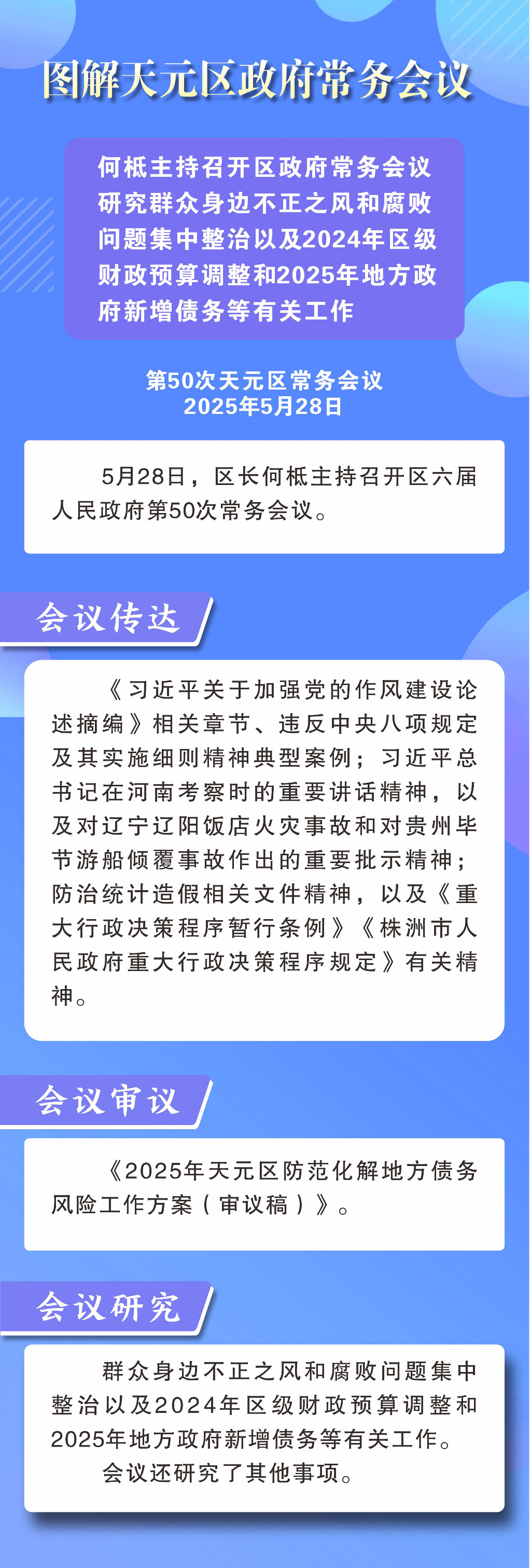 图解:何柢主持召开区政府常务会议 研究群众身边不正之风和腐败问题集中整治以及2024年区级财政预算调整和2025年地方政府新增债务等有关工作