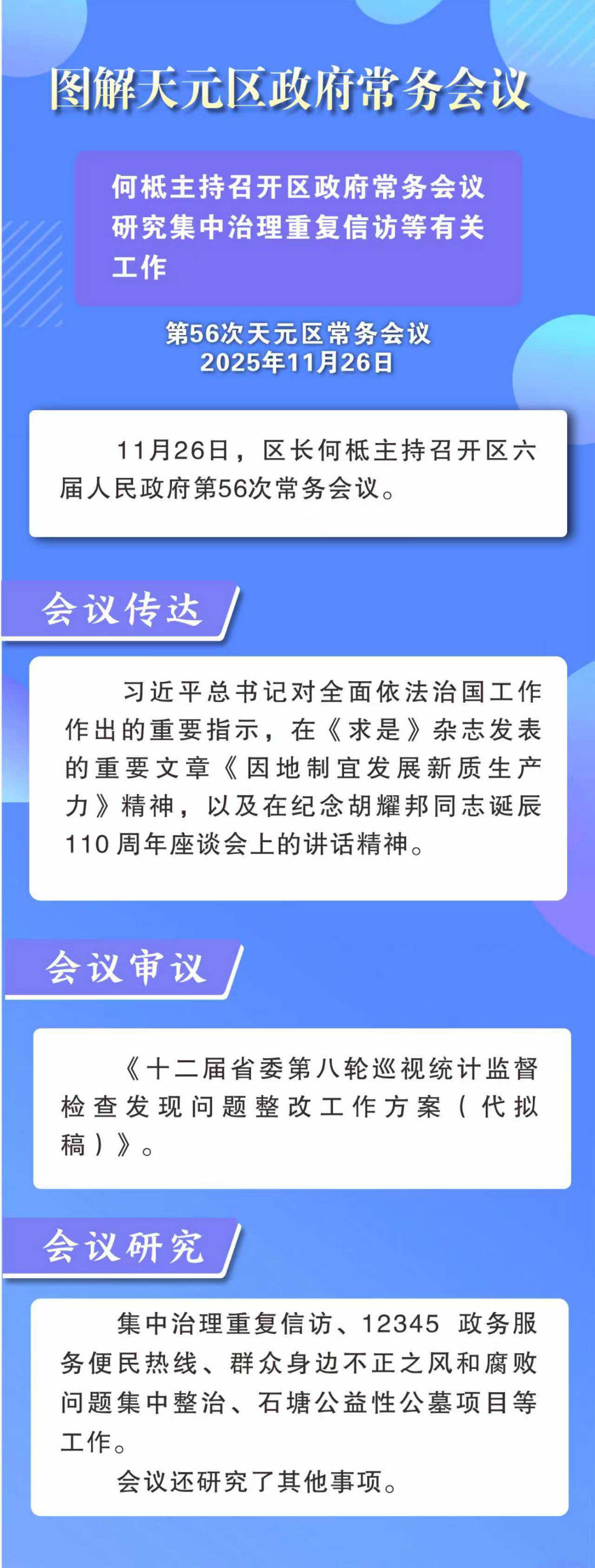 图解:何柢主持召开区政府常务会议 研究集中治理重复信访等有关工作