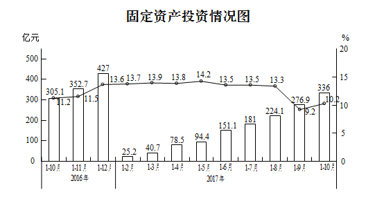 受同期高位基数以及新开工重大项目不足等多重因素影响,加之我区是投资总量超过GDP总量县市区受省市统计局严格管控,今年以来固定投资增速基本处于城区最后两位徘徊。1-10月全区完成固定资产投资336亿元,增长10.2%,增速分别比1-9月提升1个百分点。