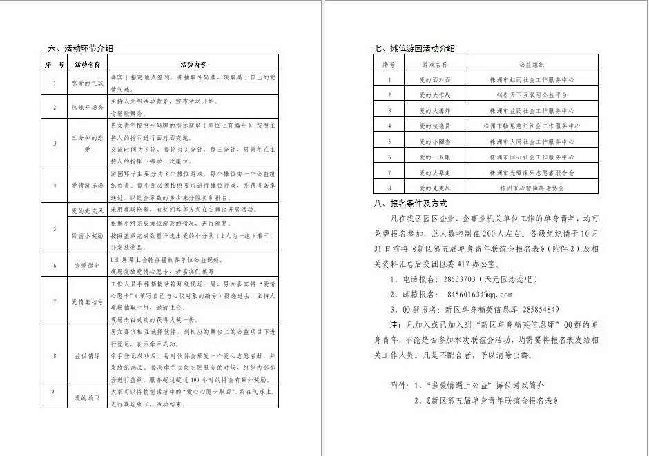注:凡加入或已加入到“新区单身精英信息库”QQ群(群号:285854849)的单身青年,不论是否参加本次联谊会活动,均需要将报名表发给相关工作人员。凡是不配合者,予以清除出群。