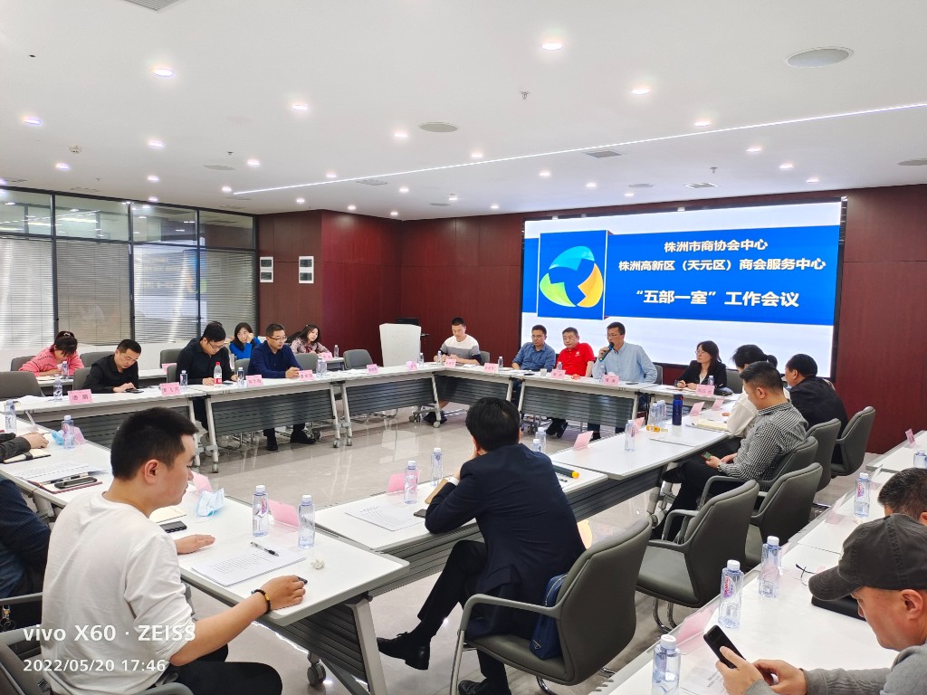 2022年5月20日,天元区工商联在株洲市商协会中心、株洲高新区(天元区)商会服务中心(以下简称“中心”)大会议室召开中心工作推进会。会议由区委统战部副部长、区工商联党组书记刘江云主持,区委统战部常务副部长谭勇、天元区二级调研员李铭出席会议,区产业局、区财政局、区人社局、区招商局、区司法局、区商粮局、区市场监督局、区政府金融办、区税务局、区两新党工委等10家区非公有制经济领导小区成员单位分管领导、中心入驻13家株洲市商协会会长、秘书长,共计40人参加会议。