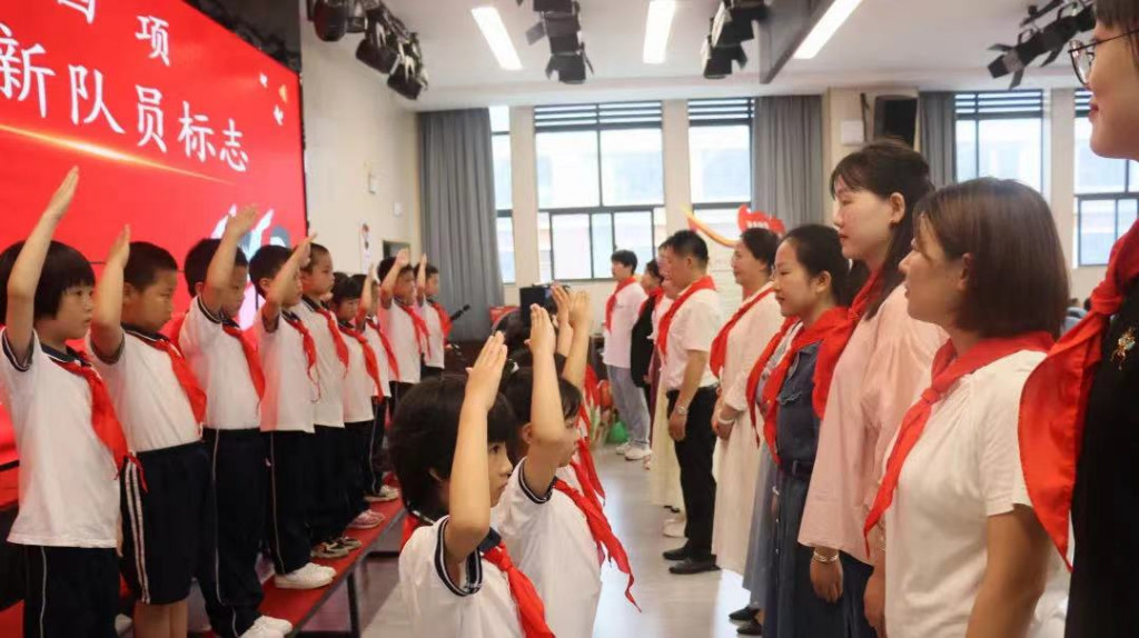 二中附二小组织开展了“飘扬同年,润泽同心”主题入队仪式。