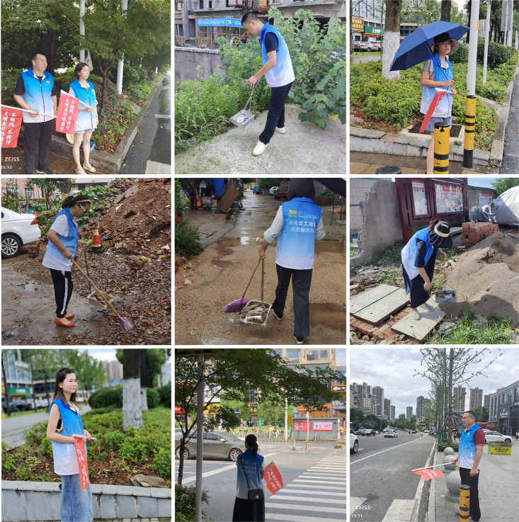 结合市委、区委“文明创建我来了、幸福株洲我来建”志愿服务主题,7月2日,天元区工商联干部进小区工作队与株洲大汉信息产业园党支部、湖南丰科市政园林有限公司党支部联合开展“一路有礼”与“文明进小区”志愿活动。活动在泰山路金华路口与韶溪社区27区同时开展。活动中,志愿者们对27区绿化带、地面杂物和卫生死角进行了清洁打扫,还对泰山路金华路口3处人行道的过往行人和摩托车、电动车进行文明交通劝导。