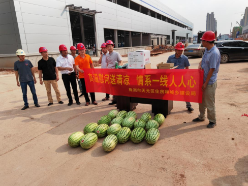此次慰问活动,先后走访湖南宏工、天易科技城2.5期厂房、菲斯罗克等多个市、区重点项目建筑工地,为他们送去了藿香正气水、清凉油、凉茶、风油精、板蓝根、人丹、西瓜等防暑物品,切实把关爱送到工人心坎上。