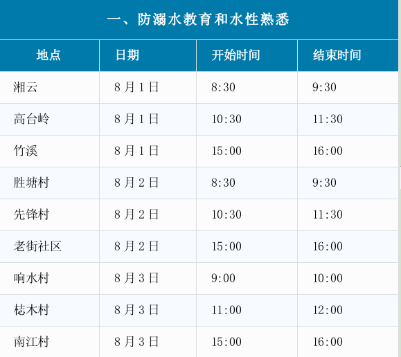 ① 防溺水教育:聘请蓝天救援队专业队员教学