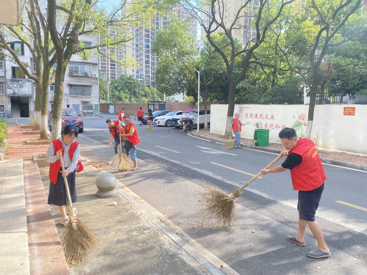 身披红色马夹的志愿服务队进小区、进巷道开展环境卫生专项整治行动,营造干净整洁的人居环境。志愿者们前往各个楼栋,细心清理公共场所"牛皮癣"广告,对小区绿化进行修整维护,对楼道乱堆乱放、乱挂乱贴等脏乱差卫生死角进行全面清理,最后清扫铺满落叶的小区街道。