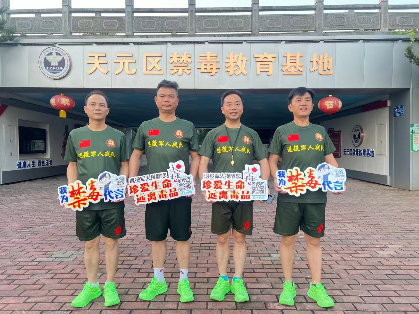 为广泛宣传普及禁毒知识,增强市民识毒、防毒、拒毒意识和能力,6月26日上午,在第35个"626"国际禁毒日之际,天元区退役军人志愿服务队组织辖区退役军人在栗雨湖禁毒教育基地开展"健康靠运动,禁毒靠行动"主题活动。