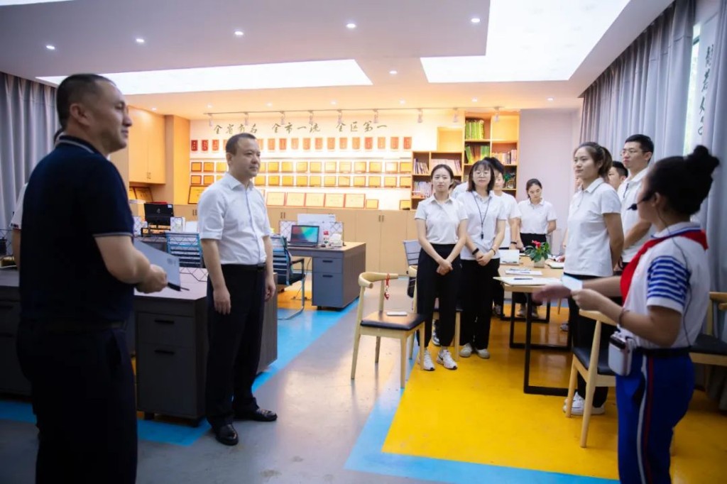同一天,刘智勇一行来到白鹤学校,实地查看学校操场、食堂及教学楼等场所,了解开学秩序、校园安全设施和疫情防控等情况后,刘智勇听取了学校负责人关于学校“民转公”后教师队伍建设、教育教学管理等情况的汇报。他还与教师代表亲切交流,详细了解教师们的工作、生活情况,感谢他们为新区教育事业发展作出的积极贡献。